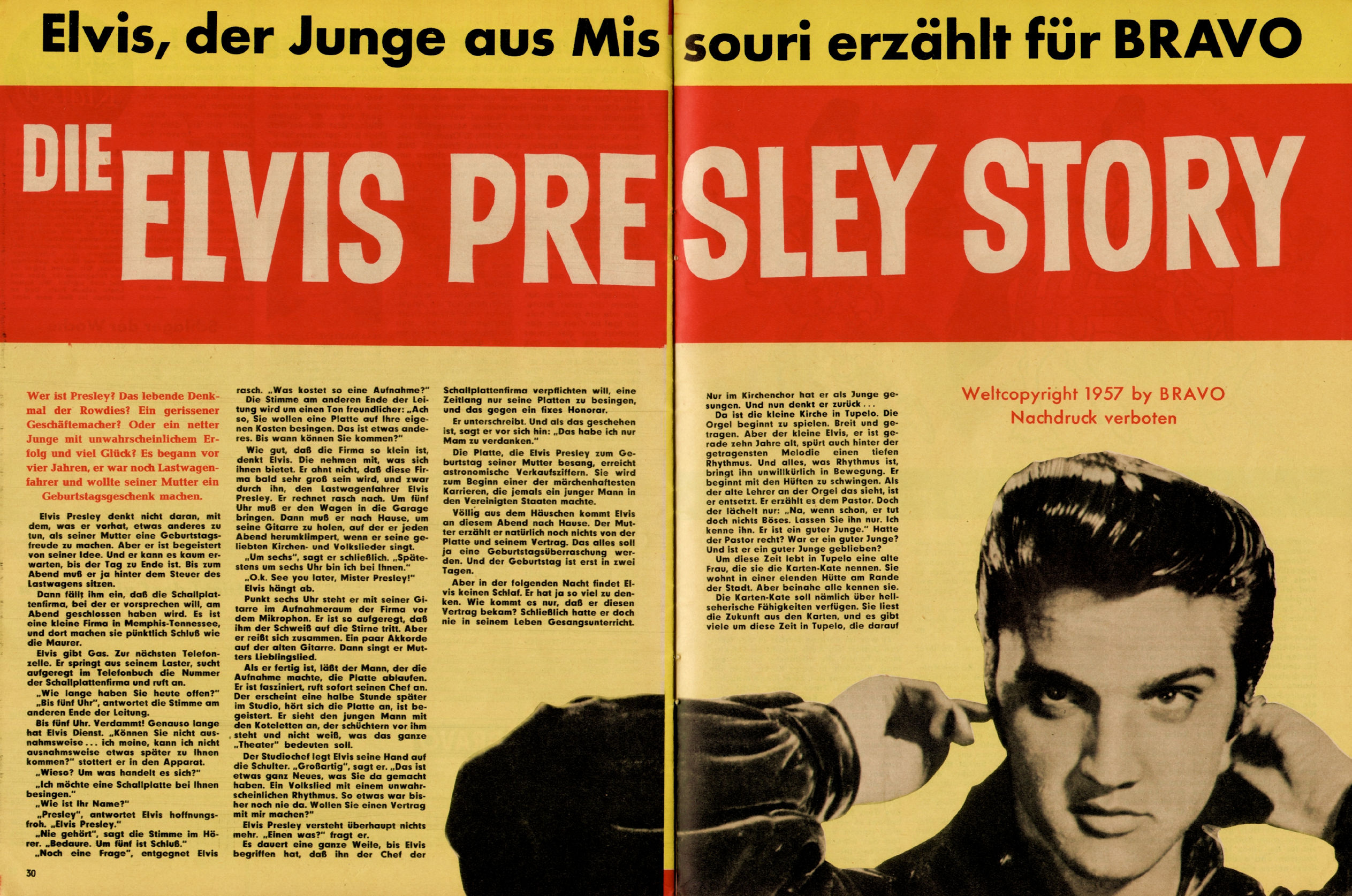 From 1956 we go to 1957. Elvis' name was now established in Europe too. Bravo magazine started their series "Elvis Presley Story" so that German (and European) fans could learn who the boy was... this boy from Missouri (...)