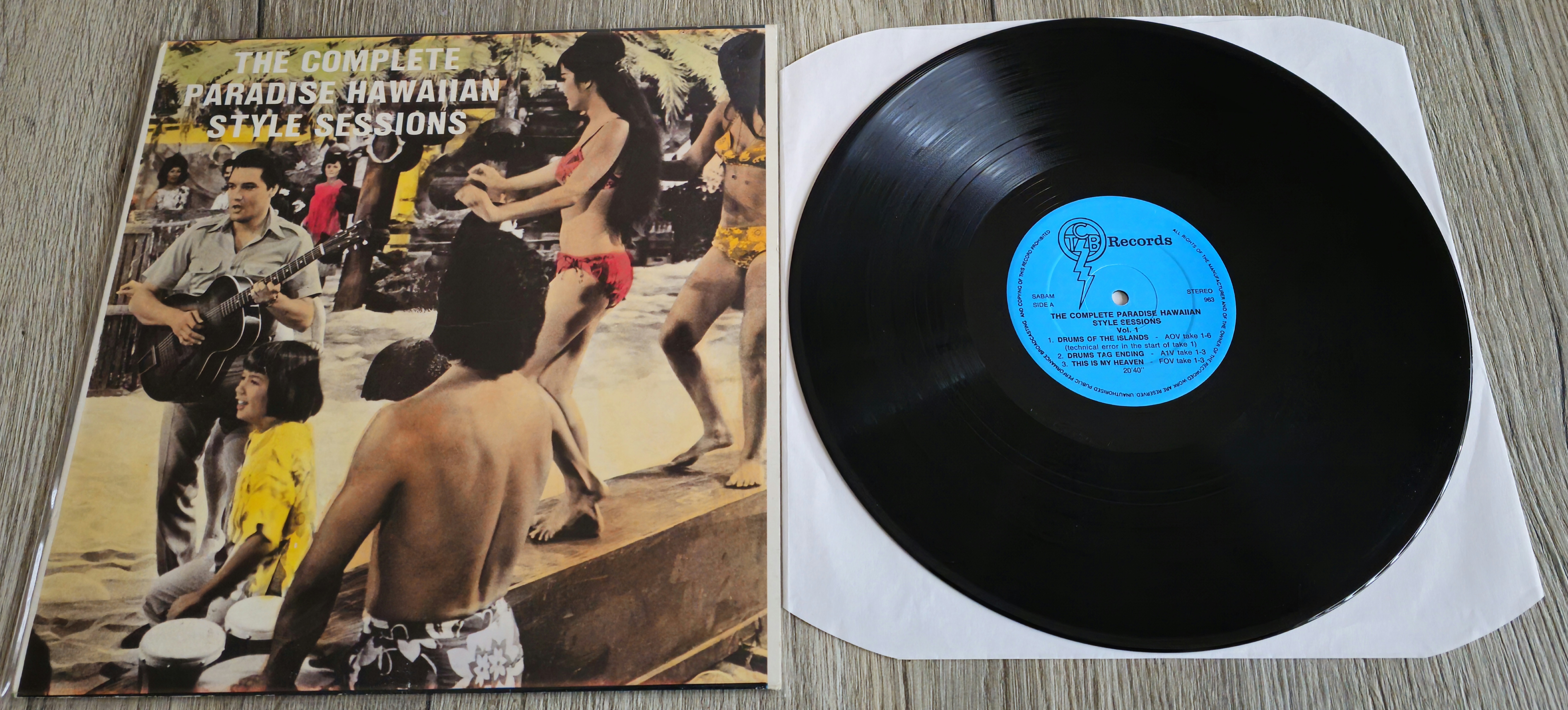 These 3 LP's, The Complete Paradise Hawaiian Style Sessions, were released in 1989. To this date they contain quite some unreleased outtakes, ranging from false starts (FS) to complete (CPL). Of course... when FTD releases the sessions for this movie it will be complete (if all the tapes are still in the archives) and in much better sound. The sound on these LP's is rather muffled and in mono. The cover design isn't very artistic either...