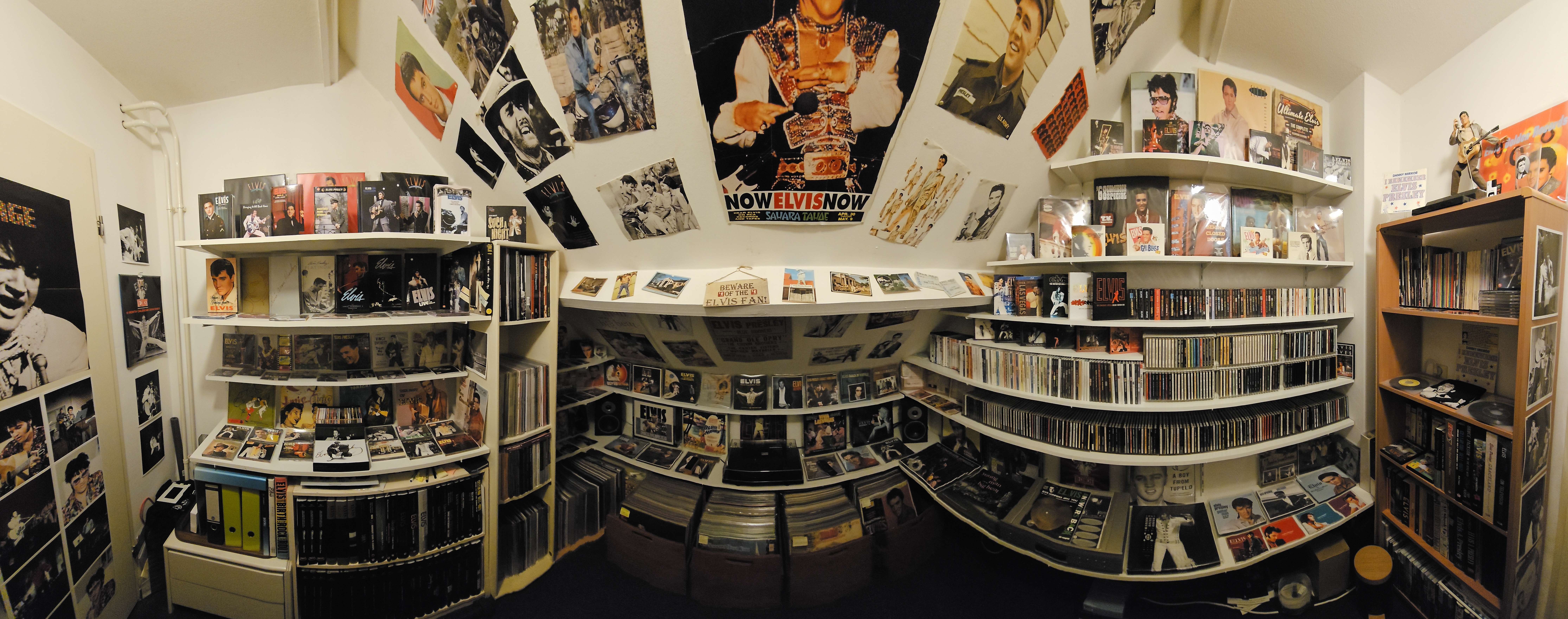 Thank you very much! Your advice is appreciated. You are right about the speakers... I am still figuring out how to replace them. It really is a small room so my options are limited. The best option would be to start tough negotiations (wich I most likely will lose) with my dear wife, to get a bigger room.JohnnyByeBye wrote: December 17th, 2025, 4:59 amBilbo,your Elvis room looks greatBilbobaggins wrote: December 15th, 2025, 6:22 am I'm very fond of my collection and I love to watch it while listening to a nice LP or CD. So I got special permission from the lady of the houseto store my goodies in a spare room in our house. I usually put protective sleeves on my LP's. CD's and books and then place them on the shelves. The room has no windows/sunlight and a constant temperature, so it's perfect for storing a collection.