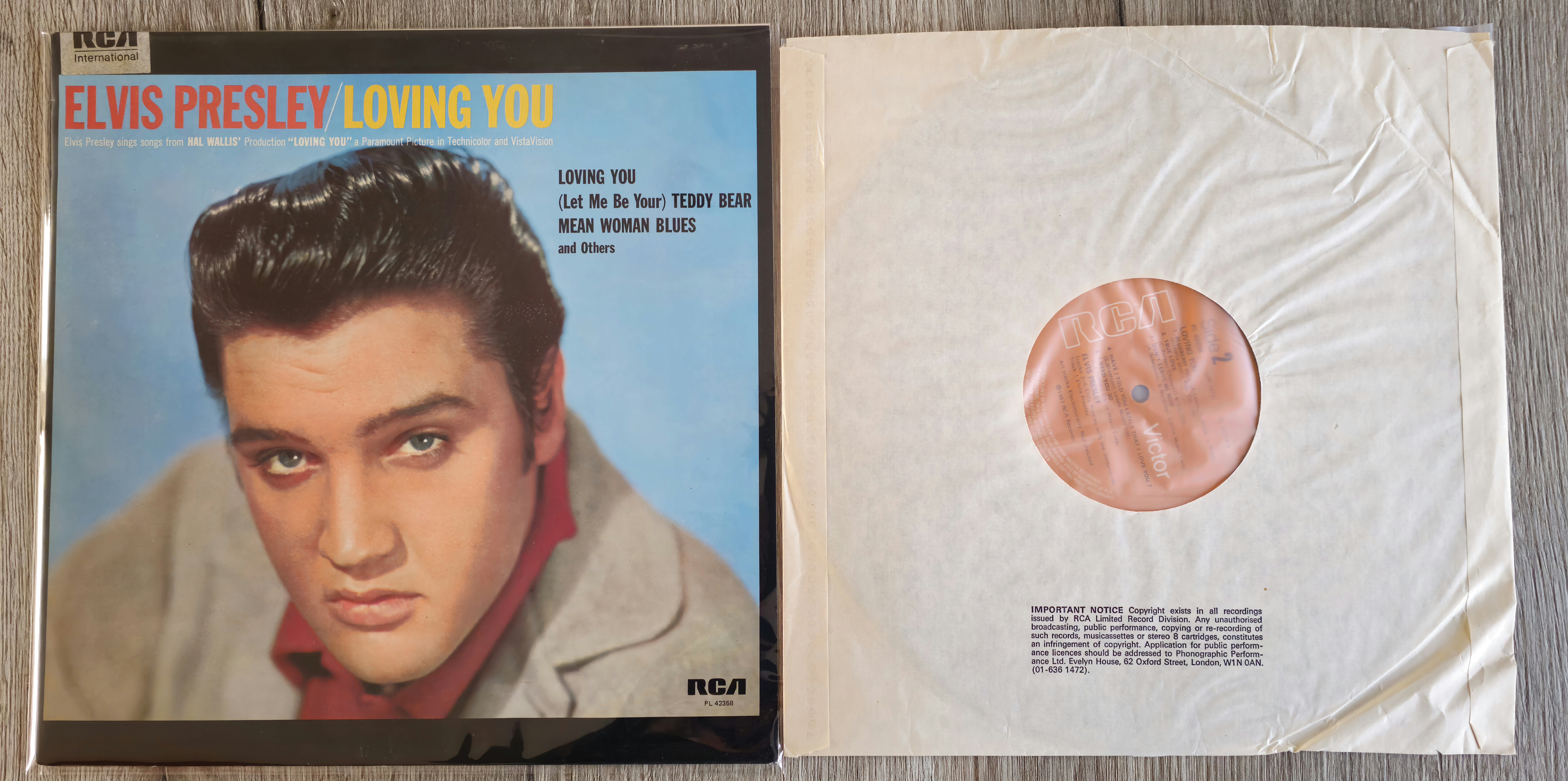 A while ago I got these two 'INTS pressing'. As far as I know, the only 'INTS' part is the fold-over sticker in the left upper corner. Apparently RCA UK took the leftover stock from 1977 and released them as INTS in 1981. So that makes the Loving You LP the fake stereo version. No mystery there...