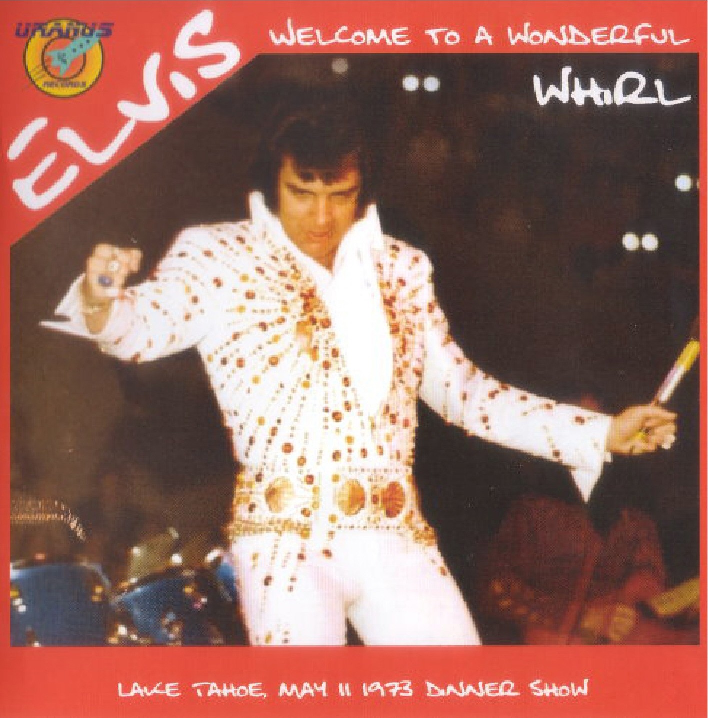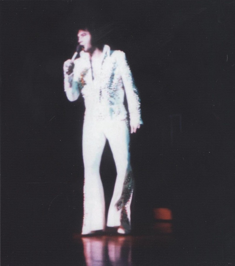 Elvis is wearing the Lake Tahoe firework suit with the famous international gold belt.