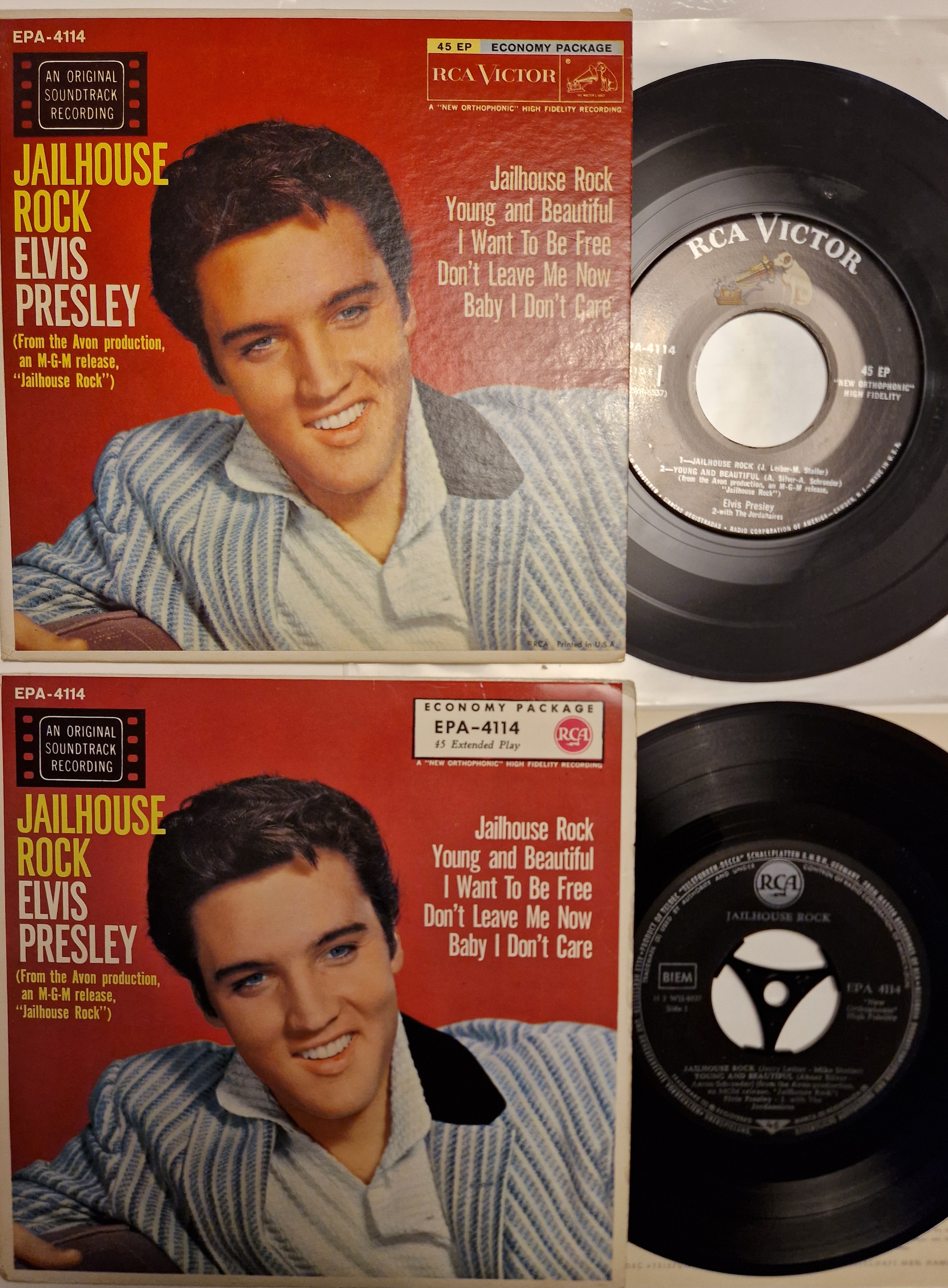 Just for the heck of it, I also brought my Jailhouse Rock EP's into comparison. I used my US and Germny pressings for that. See them below.