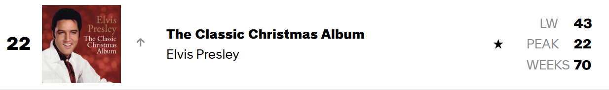 marvan wrote: December 31st, 2025, 10:35 am ALBUM 200 : #22 : New peak for The Classic Christmas Album. previous : #23 ( last year )